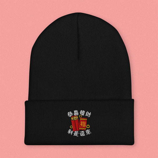Lai See Dou Loi Embroidered Beanie - Ni De Mama Chinese - Inspired Clothing | Black ,