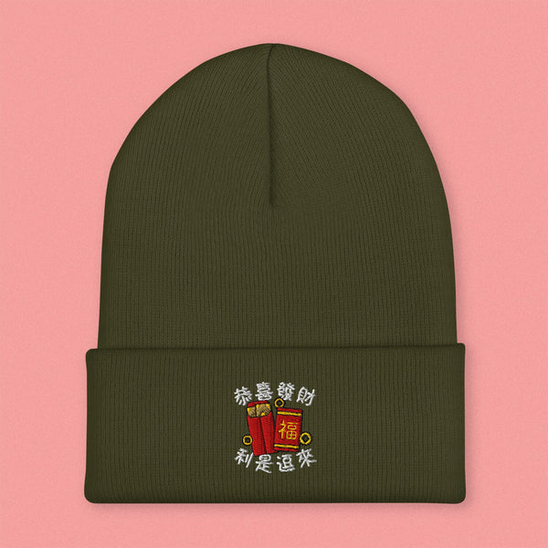 Lai See Dou Loi Embroidered Beanie - Ni De Mama Chinese - Inspired Clothing | Olive Green ,