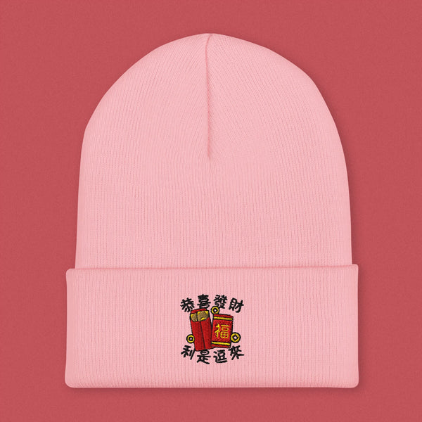 Lai See Dou Loi Embroidered Beanie - Ni De Mama Chinese - Inspired Clothing | Soft Pink ,